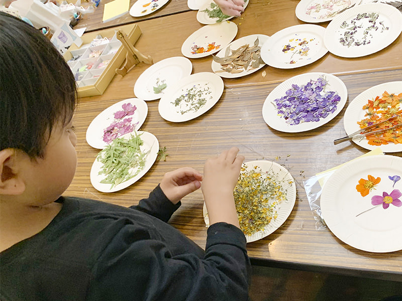 子供向けのデコパージュと大人向けのドライフラワーアレンジのワークショップです